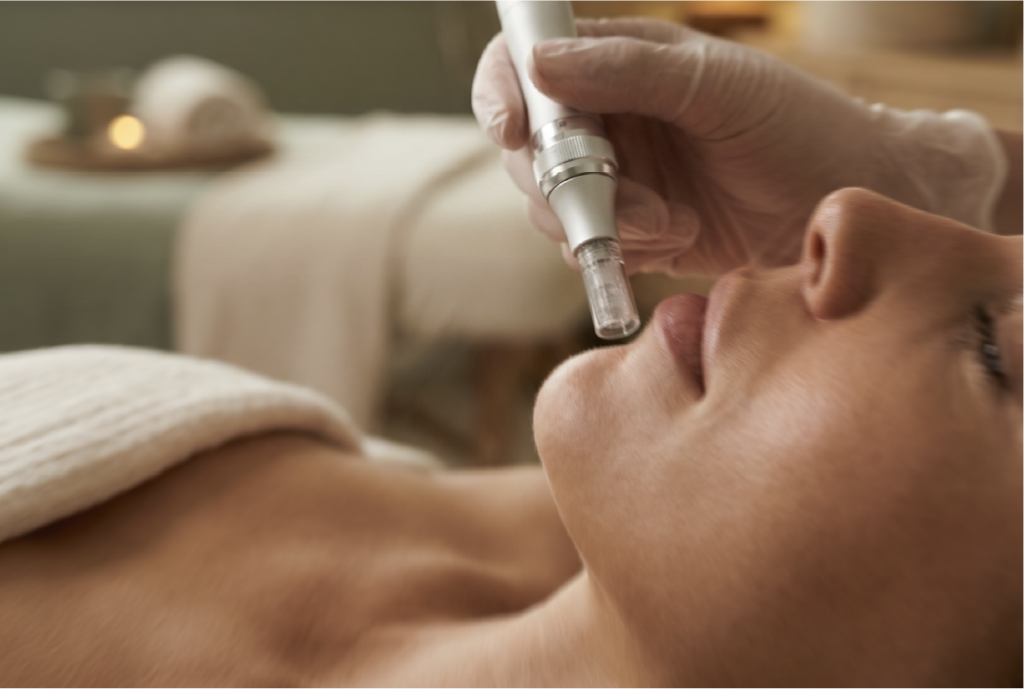 Microneedling utilizes the handheld SkinPen® device that uses sterile needles to glide along the skin and create micro-channels that trigger the skin’s healing process, leading to increased production of collagen and elastin, two crucial proteins for skin health and vitality. The treatment effectively rejuvenates the skin, improving its overall texture and appearance.